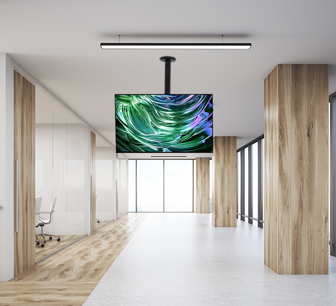 מתקן תלייה תקרתי לטלוויזיה עם אפשרות התקנה לאורך או לרוחב